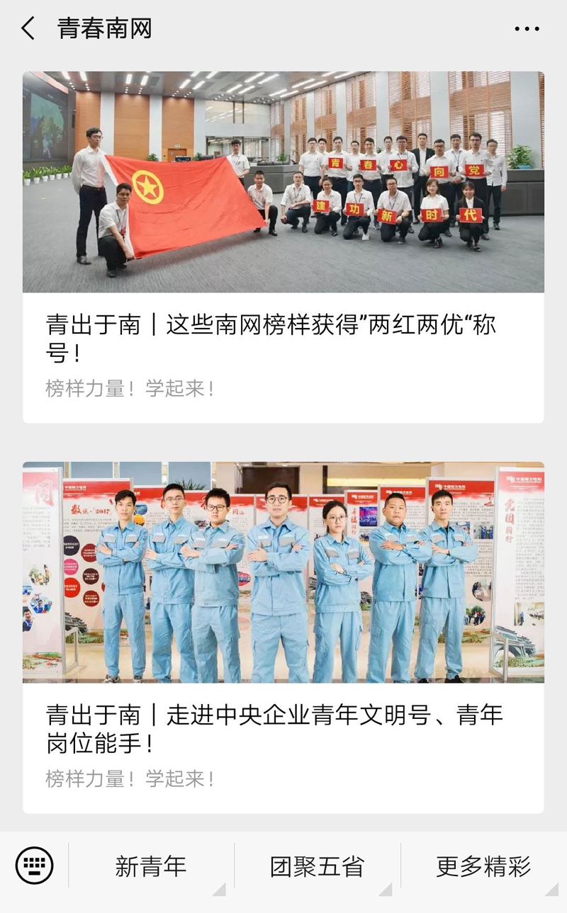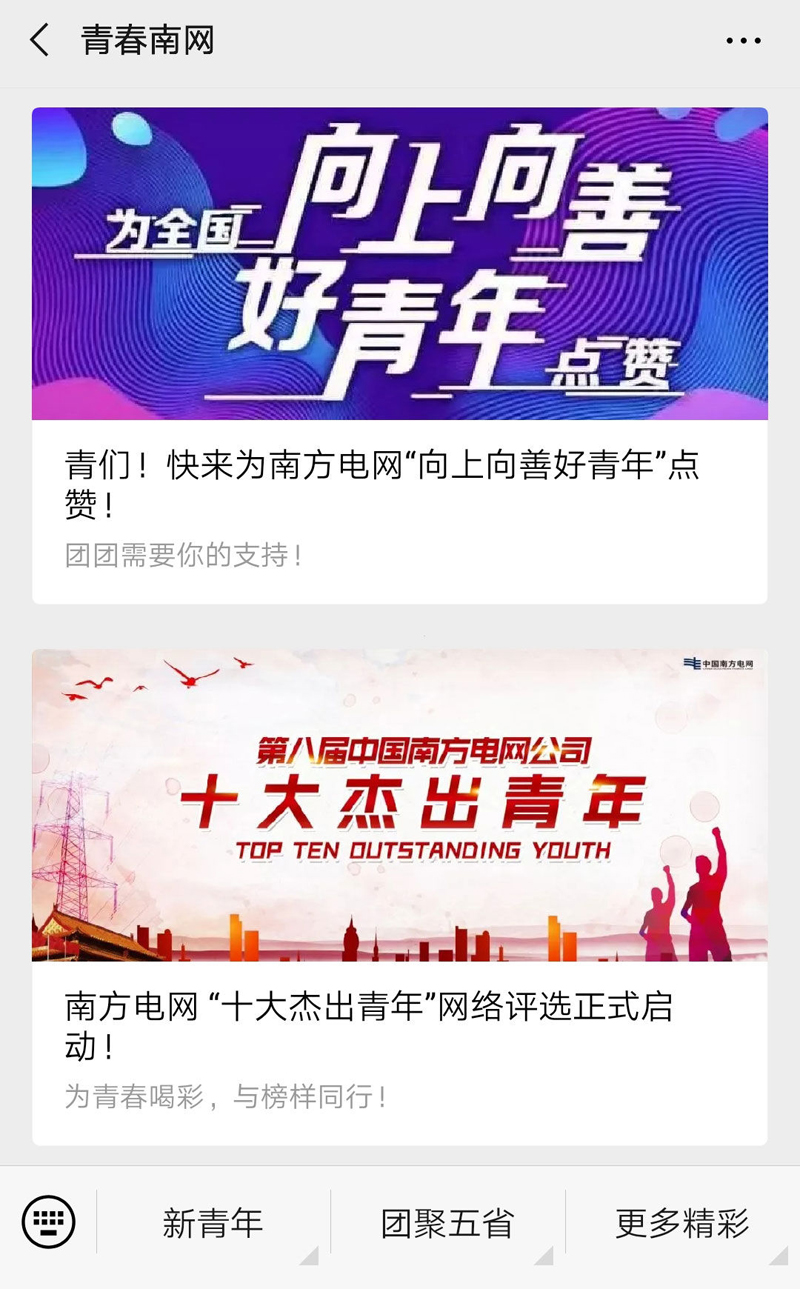 “青春南網(wǎng)”是南方電網(wǎng)公司團委官方微信訂閱號,是南網(wǎng)團青工作重要宣傳交流平臺和南網(wǎng)團員青年精神文化家園,致力于打造南方電網(wǎng)青年思想政治教育、意識形態(tài)引領(lǐng)、熱點新聞傳播、活動宣傳推廣的數(shù)字媒體平臺。自2018年5月上線以來,始終圍繞著青年思想引領(lǐng)、青年工作動態(tài)、青年創(chuàng)新展示、青年活動推廣和志愿公益行動等方面開展工作,主動宣貫黨中央精神和決策部署,主動響應團中央各項工作要求,主動貼合青年互動和社交需求,傳播企業(yè)團青動態(tài),營造正面輿論氛圍,樹立青年榜樣形象,唱響南網(wǎng)青春正能量。